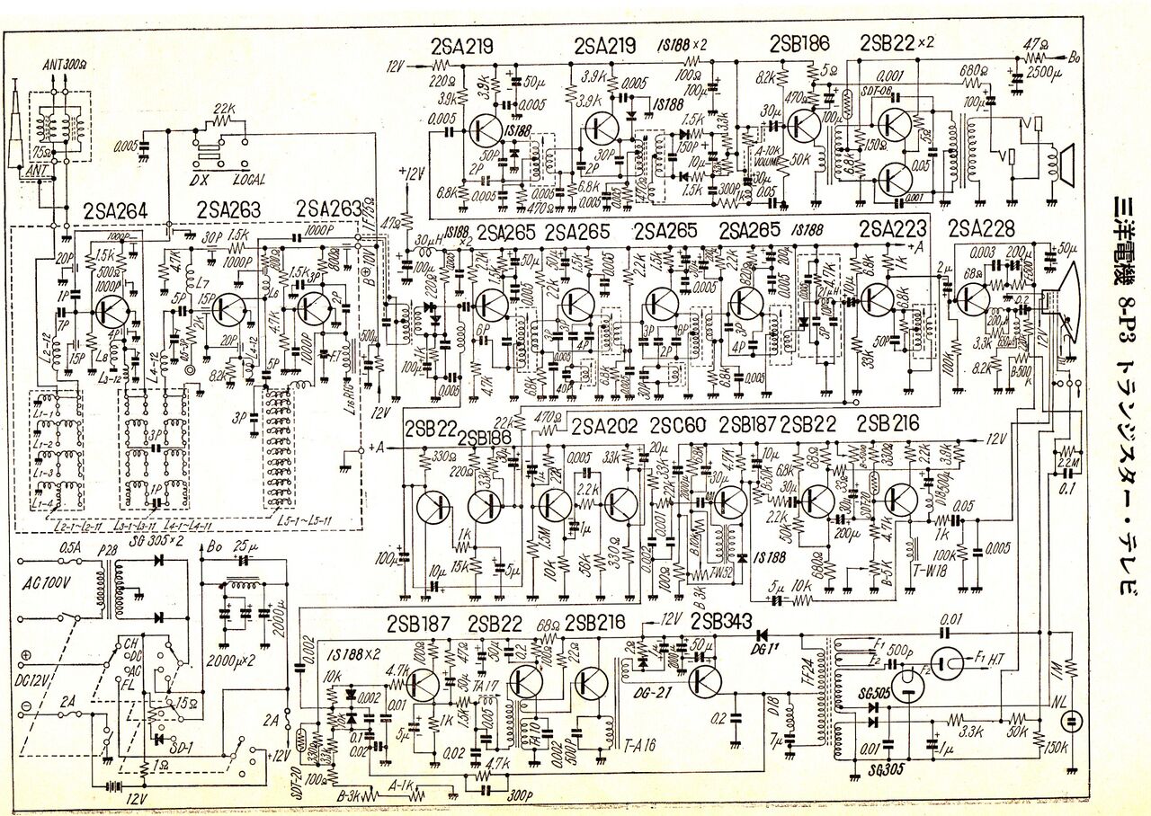 以下は各社の初期のトランジスタテレビの回路図の紹介なので、ご興味無い方はスルーして下さい